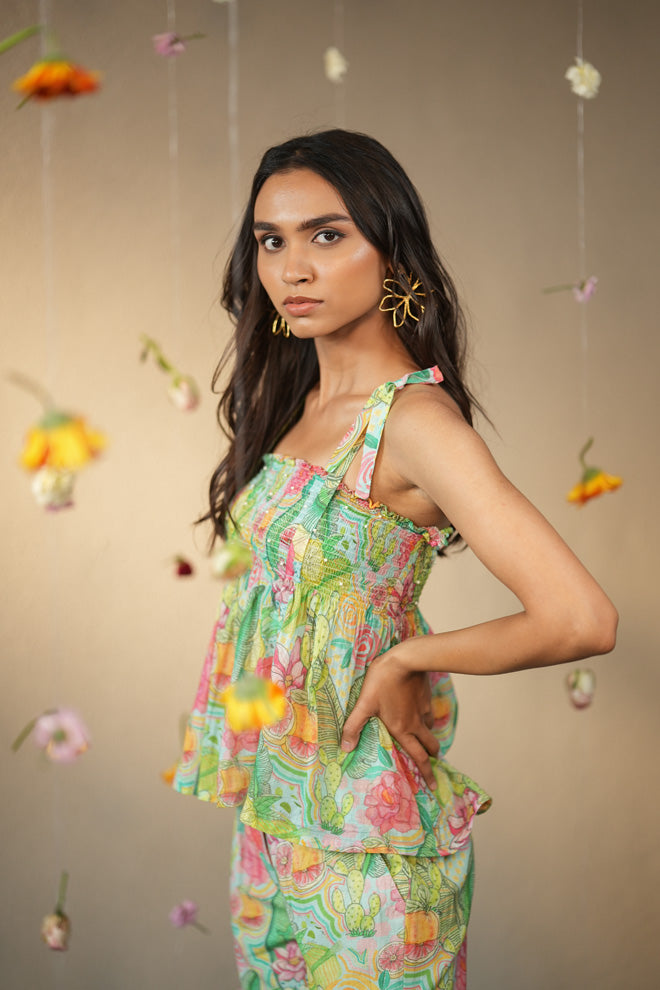 This set includes an elasticated self-tie top. This top brings the one & done quality to your wardrobe, and you can wear it almost anywhere.